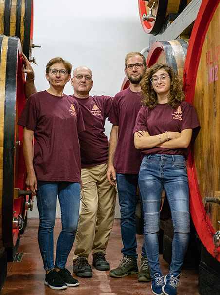 Tutta la famiglia partecipa attivamente all’attività aziendale: Fabio e Nicola gestiscono tutte le operazioni nei vigneti e negli oliveti, Sofia è enologa e gestisce la parte produttiva e il controllo qualità, Elena invece gestisce le vendite, degustazioni e gruppi turistici.